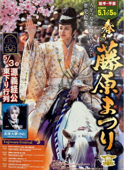 【2026年 春の藤原まつり】5月3日東下り 源義経役 INI 髙塚大夢さんを間近で見れるチャンス! 当日のスケジュールや穴場もご紹介