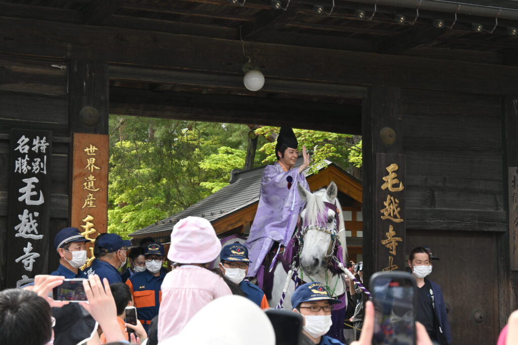 なお本堂の前まで行かなくても、その後、義経役一行は馬に乗って山門から出発します。