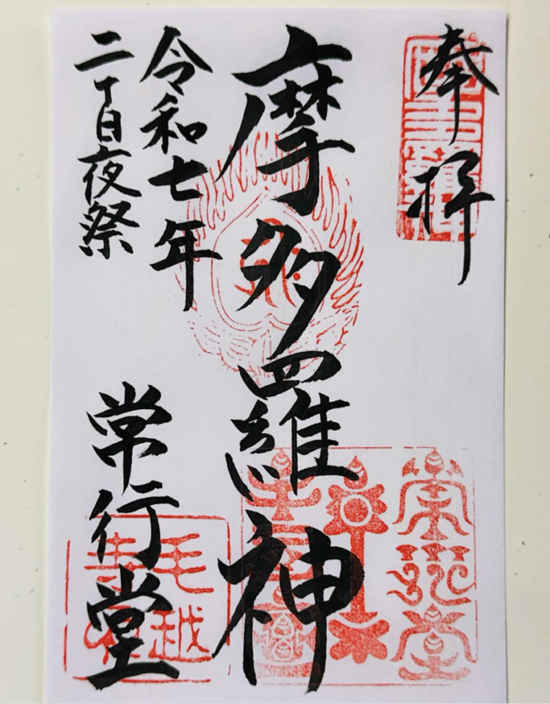 この二十日夜祭を御参拝ただきました方々に、常行堂に安置されております摩多羅神様の御朱印を授与いたします。
